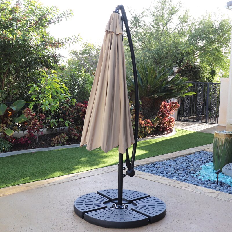 Use this 4 piece cantilever water weights for offset Free Standing Umbrella Base set to perfectly anchor your cantilever patio umbrella. The umbrella base is made of heavy-duty plastic, is really hard and weather-resistant, prevents color from fading, and is easy to maintain. It can be filled with large weight water and sand so that plates provide additional weight to make your patio umbrella stand perfectly in windy conditions.