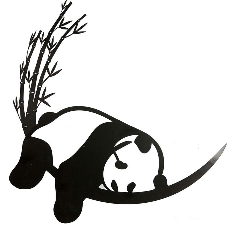 This lovely Resting Panda and Bamboo Metal Wall Art is a striking example of creative graphic design. Laser-cut from matte black metal, this unique wall art shows a weary panda getting comfy among some perfectly arched bamboo stalks. The unique graphic design takes advantage of the panda’s distinctive black and white coloring to make an eye-catching silhouette. Easy to mount on most walls thanks to two integrated hanging loops.