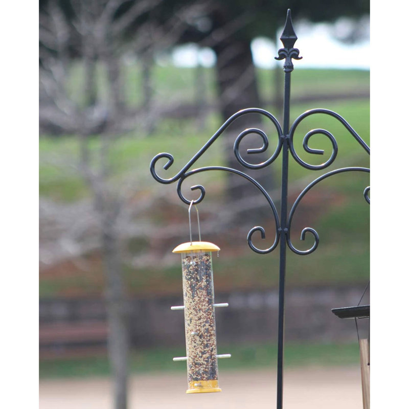 Enhance the look of your outdoor garden space with this hook from Ashman. Each of these shepherd’s hook hangers features a beautiful black powder-coated finish that can withstand rain or snow and won’t rust over time. These hangers are ideal for lining walkways, placed around your garden, or installed next to patio areas to enhance the look of your outdoor space. The curled shepherd’s hook design can display lights, mason jars, wind chimes, bug zappers, or other garden decorations. Featuring a beautiful floral design with winding curls reminiscent of victorian grace, these garden stakes will provide elegance to your garden. To install, simply screw the metal pieces together and push the hanger into the ground using your foot. Overall, each of these stands is ideal for use in weddings, outdoor events, or holiday decor. Easily decorate your outdoor space.