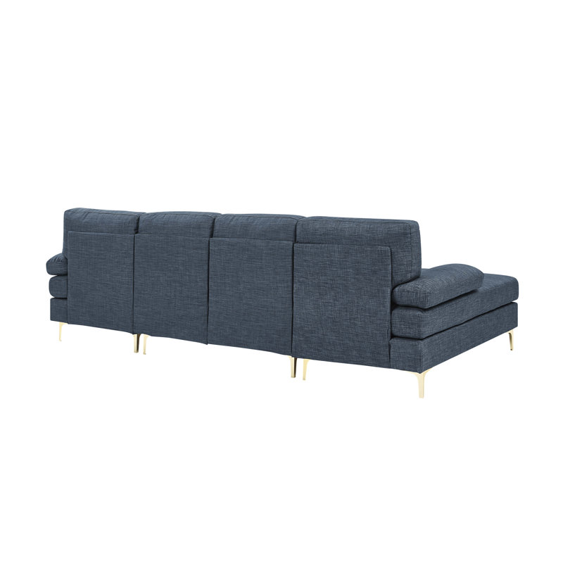 This 3-piece, U-shaped sectional sofa delivers comfort and chic style to your living room or den. We love the seating and lounging options that are offered by the sofa and chaise components, ensuring that you always have the right place to watch a movie or squeeze in an afternoon nap. The frame is made from engineered wood with sinuous spring construction that adds support and helps prevent sagging over time. The gold-tone legs add a touch of glam. Foam and ultra-soft polyester upholstery cover the pillow top arms, loose back, and square seat cushions, which are all removable for easy cleaning. Partial, tool-free assembly is required.